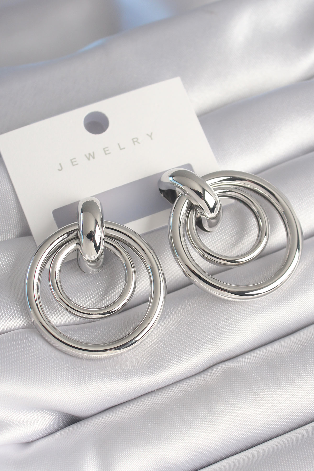 Pirinç Gümüş Renk Halka Model Kadın Küpe - TJ-BKP8734