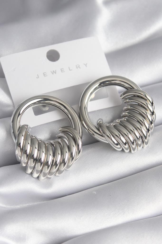 Pirinç Gümüş Renk Halka Sarmal Model Kadın Küpe - TJ-BKP8556