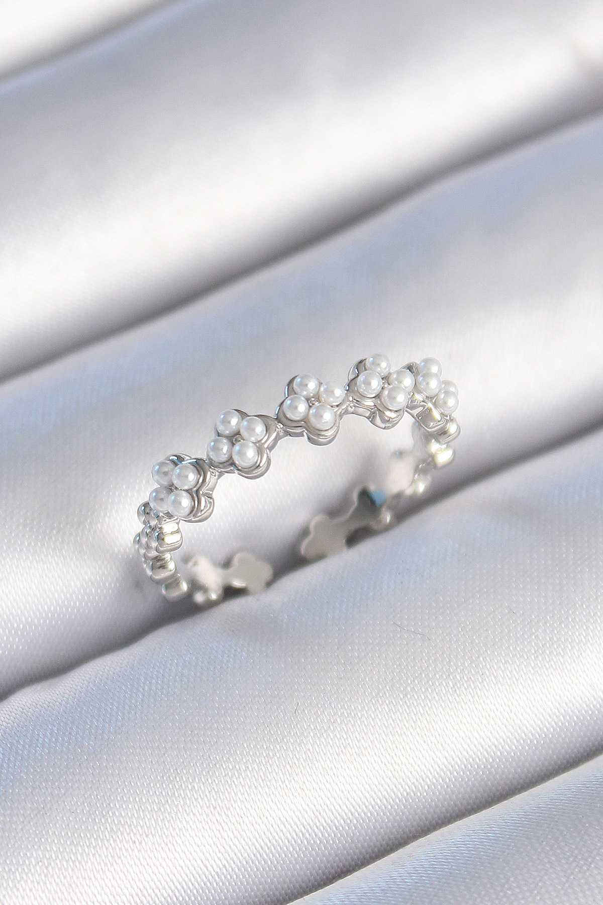 Pirinç Gümüş Renk İncili Yonca Model Kadın Yüzük - TJ-BYK3457