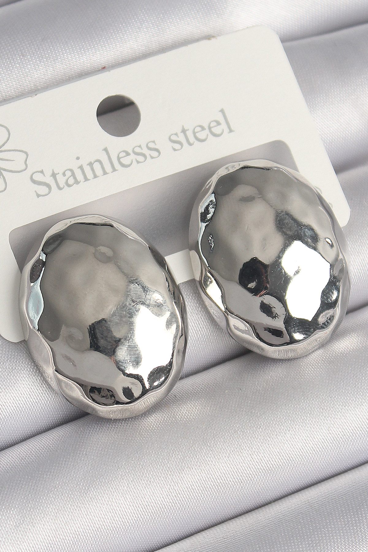 Pirinç Gümüş Renk İşleme Detaylı Bombeli Oval Plaka Model Kadın Küpe - TJ-BKP10221