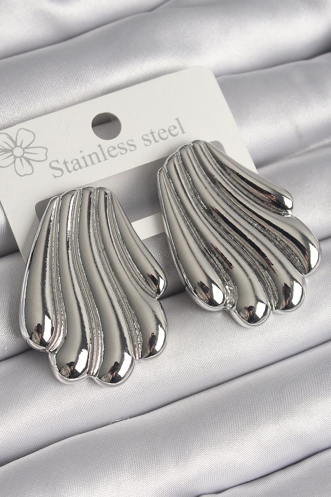 Pirinç Gümüş Renk İşlemeli İstiridye Model Kadın Küpe - TJ-BKP10231