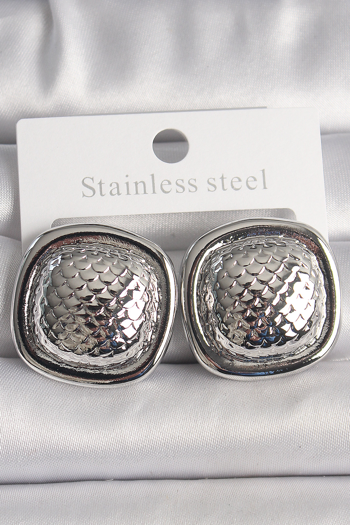 Pirinç Gümüş Renk İşlemeli Kare Model Kadın Küpe - TJ-BKP10148