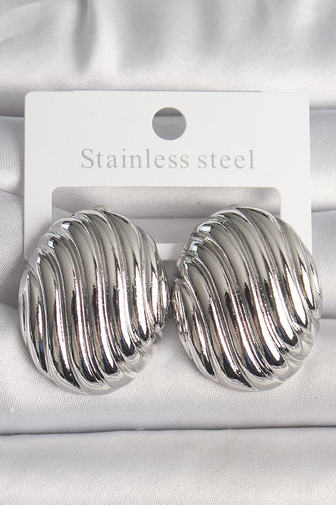 Pirinç Gümüş Renk İşlemeli Oval Model Kadın Küpe - TJ-BKP10150