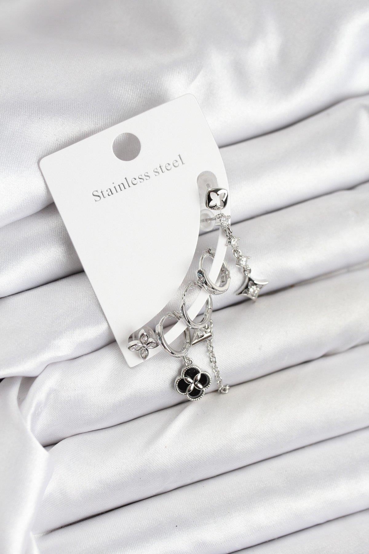 Pirinç Gümüş Renk Kadın Set Küpe - TJ-BKP11218