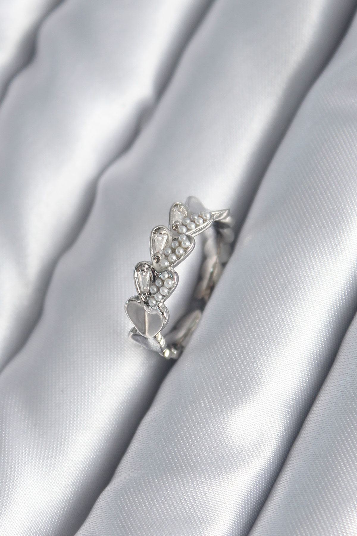 Pirinç Gümüş Renk Kalp Model İnci Detay Kadın Yüzük - TJ-BYK2982
