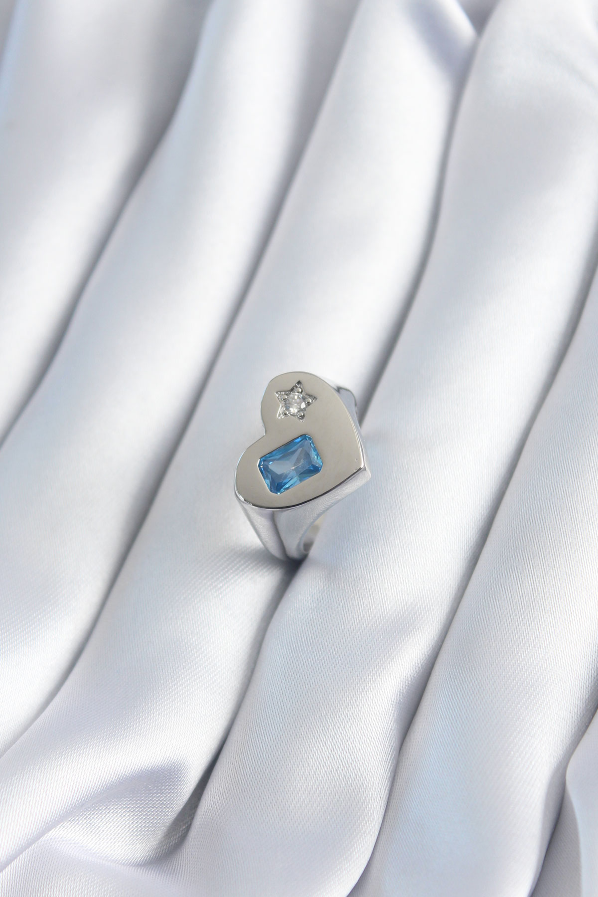 Pirinç Gümüş Renk Kalp Model Yıldız Zirkon Taş Detay Kadın Yüzük - TJ-BYK2894