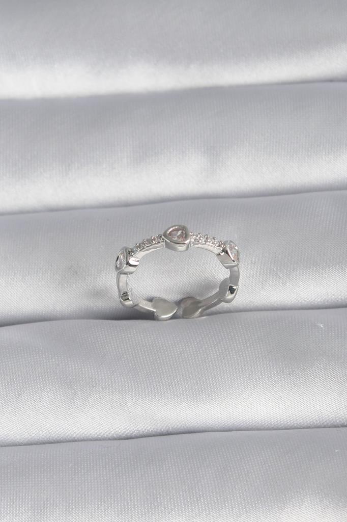 Pirinç Gümüş Renk Kalp Model Zirkon Taş Detay Kadın Yüzük - TJ-BYK3005