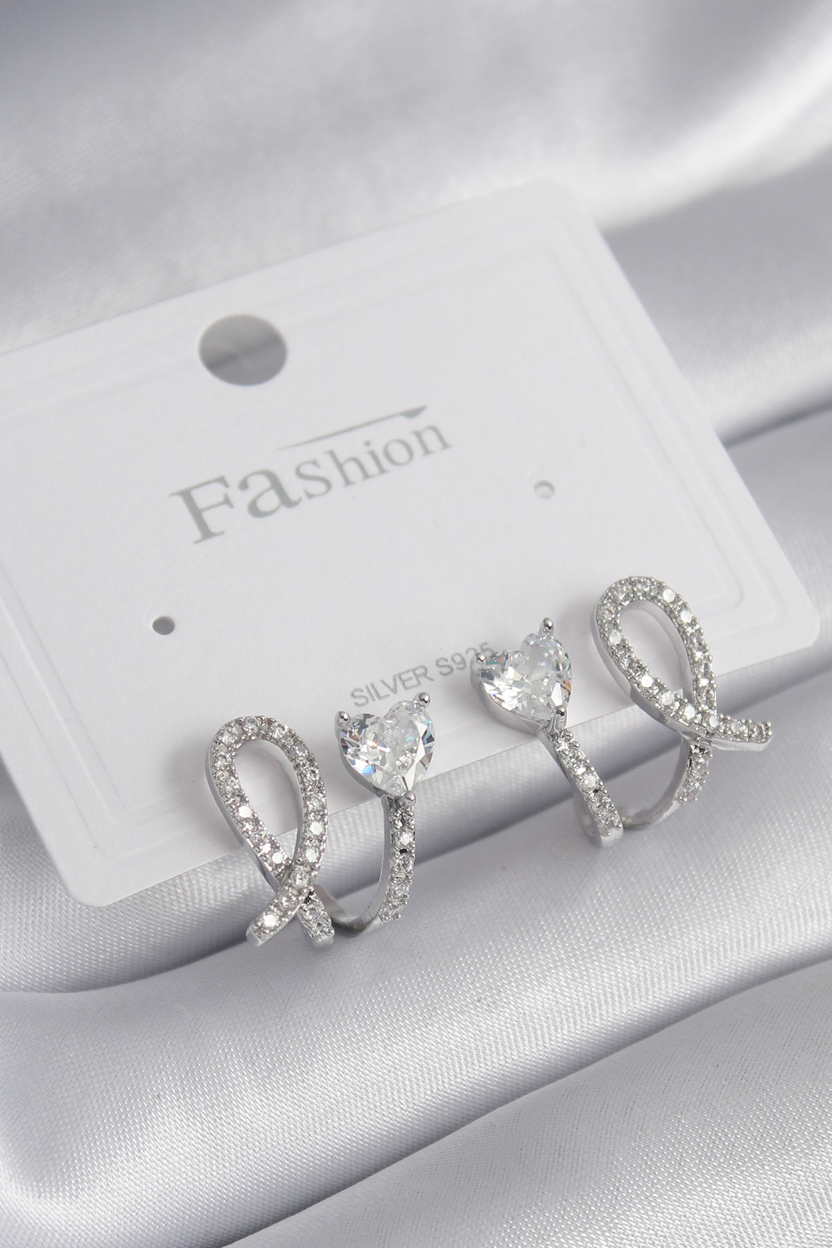 Pirinç Gümüş Renk Kalp Model Zirkon Taşlı Kadın Küpe - TJ-BKP8441