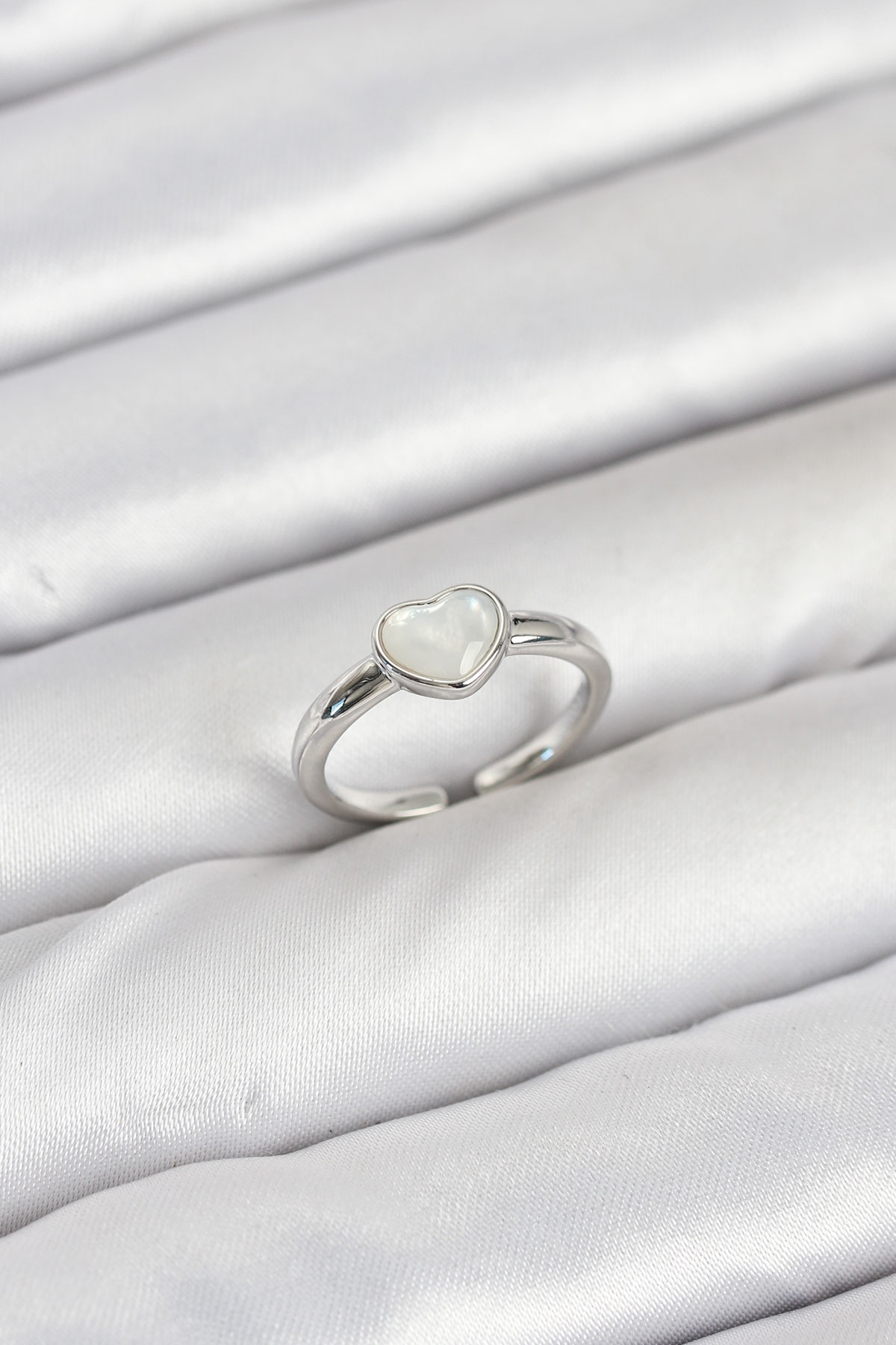 Pirinç Gümüş Renk Kalpli Kadın Yüzük - TJ-BYK3881