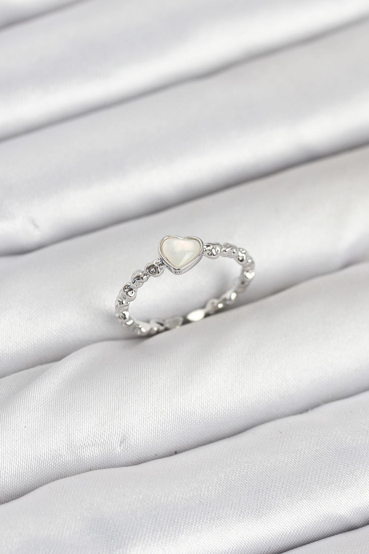 Pirinç Gümüş Renk Kalpli Model Kadın Yüzük - TJ-BYK3875