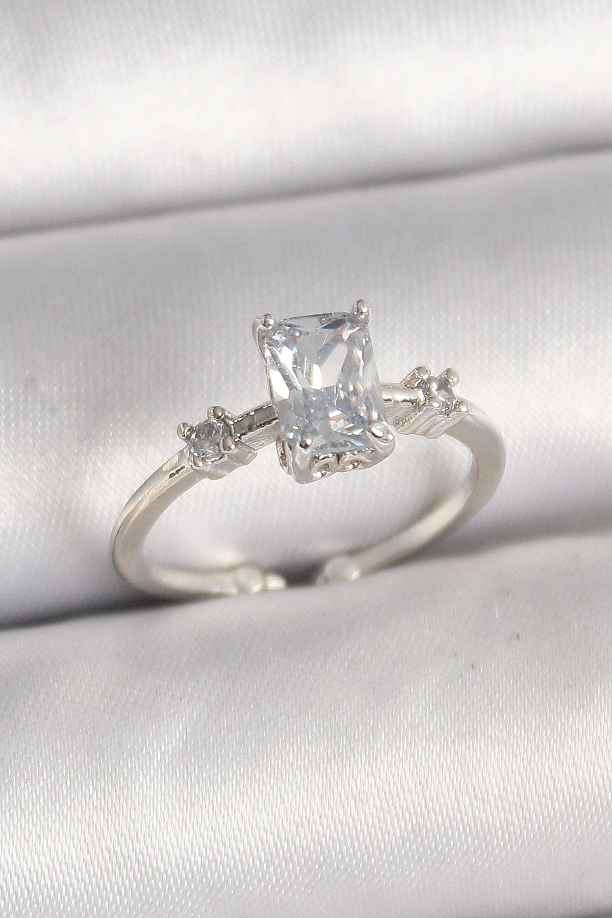 Pirinç Gümüş Renk Kare Zirkon Taşlı Model Kadın Yüzük - TJ-BYK3682