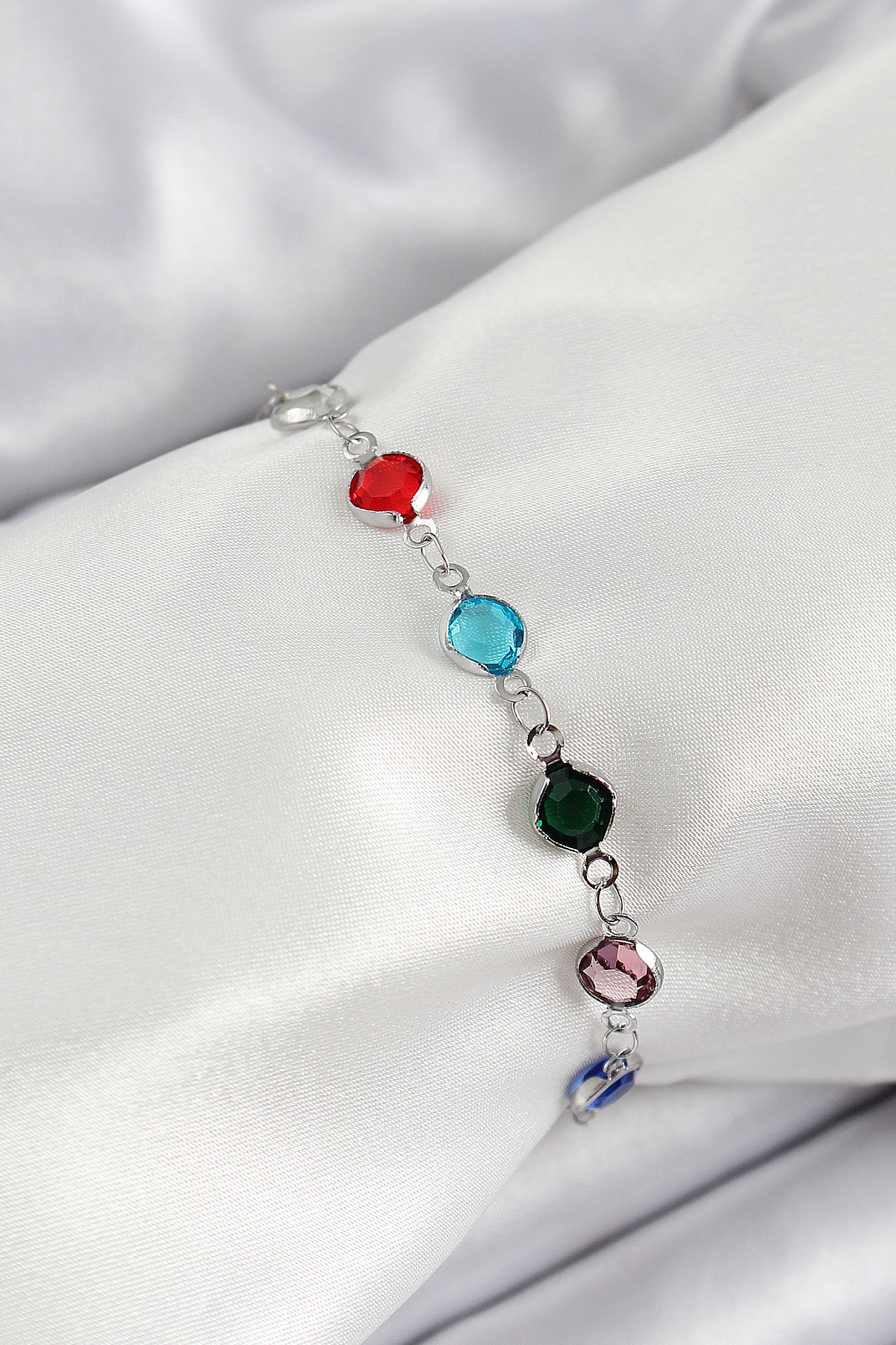 Pirinç Gümüş Renk Karışık Renk Zirkon Taşlı Kadın Bileklik - TJ-BB7046