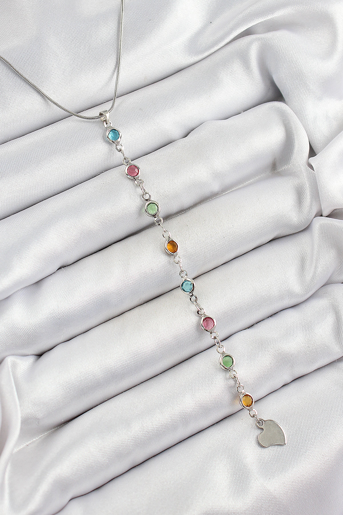 Pirinç Gümüş Renk Karışık Renk Zirkon Taşlı Y Kadın Kolye - TJ-BKO10339