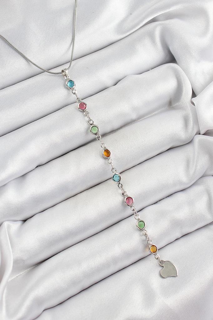 Pirinç Gümüş Renk Karışık Renk Zirkon Taşlı Y Kadın Kolye - BKO10339
