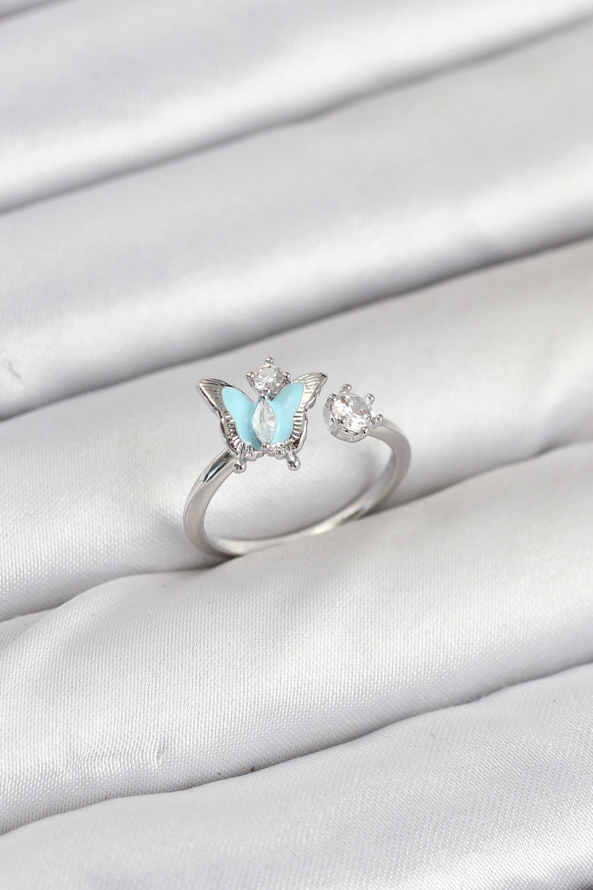 Pirinç Gümüş Renk Kelebek Model Kadın Yüzük - TJ-BYK3865