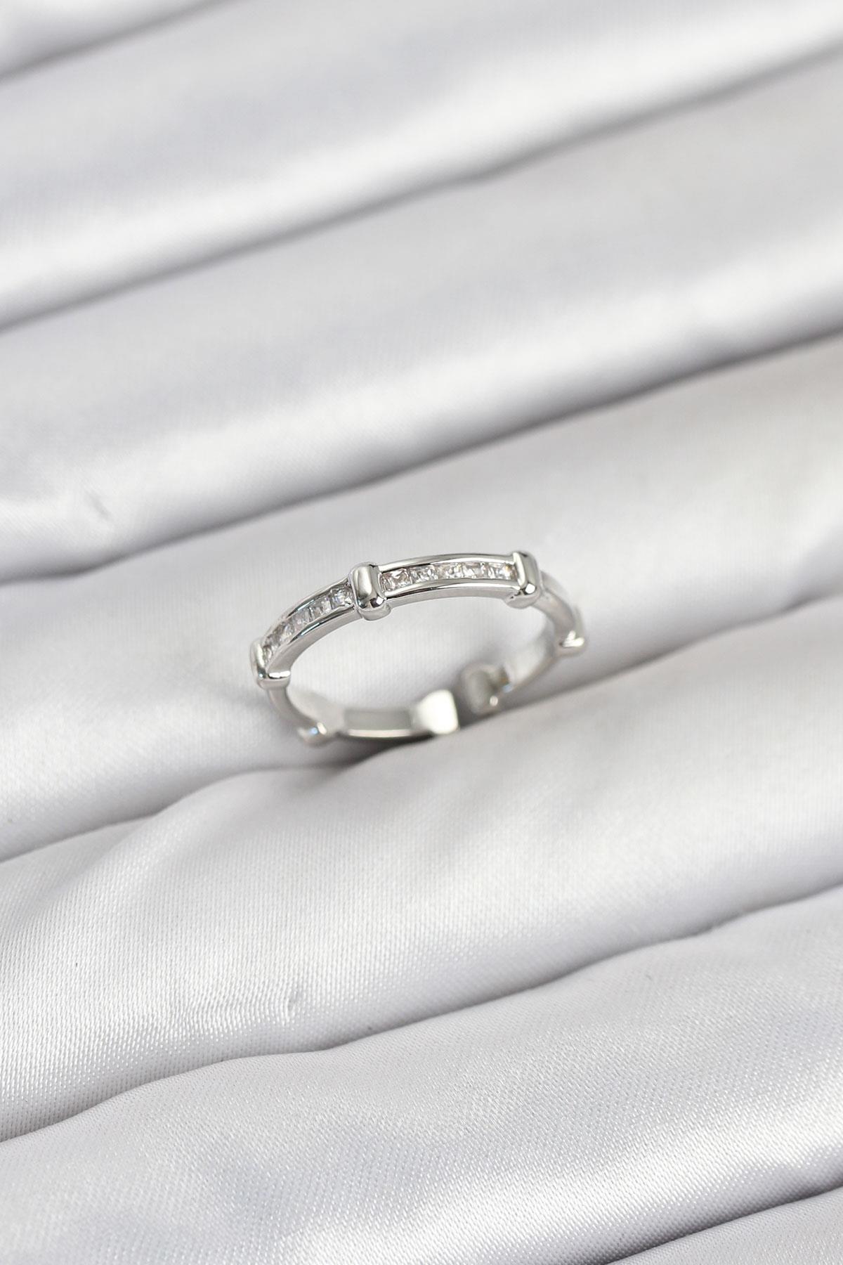 Pirinç Gümüş Renk Kemik Model Zirkon Taşlı Kadın Yüzük - TJ-BYK3889
