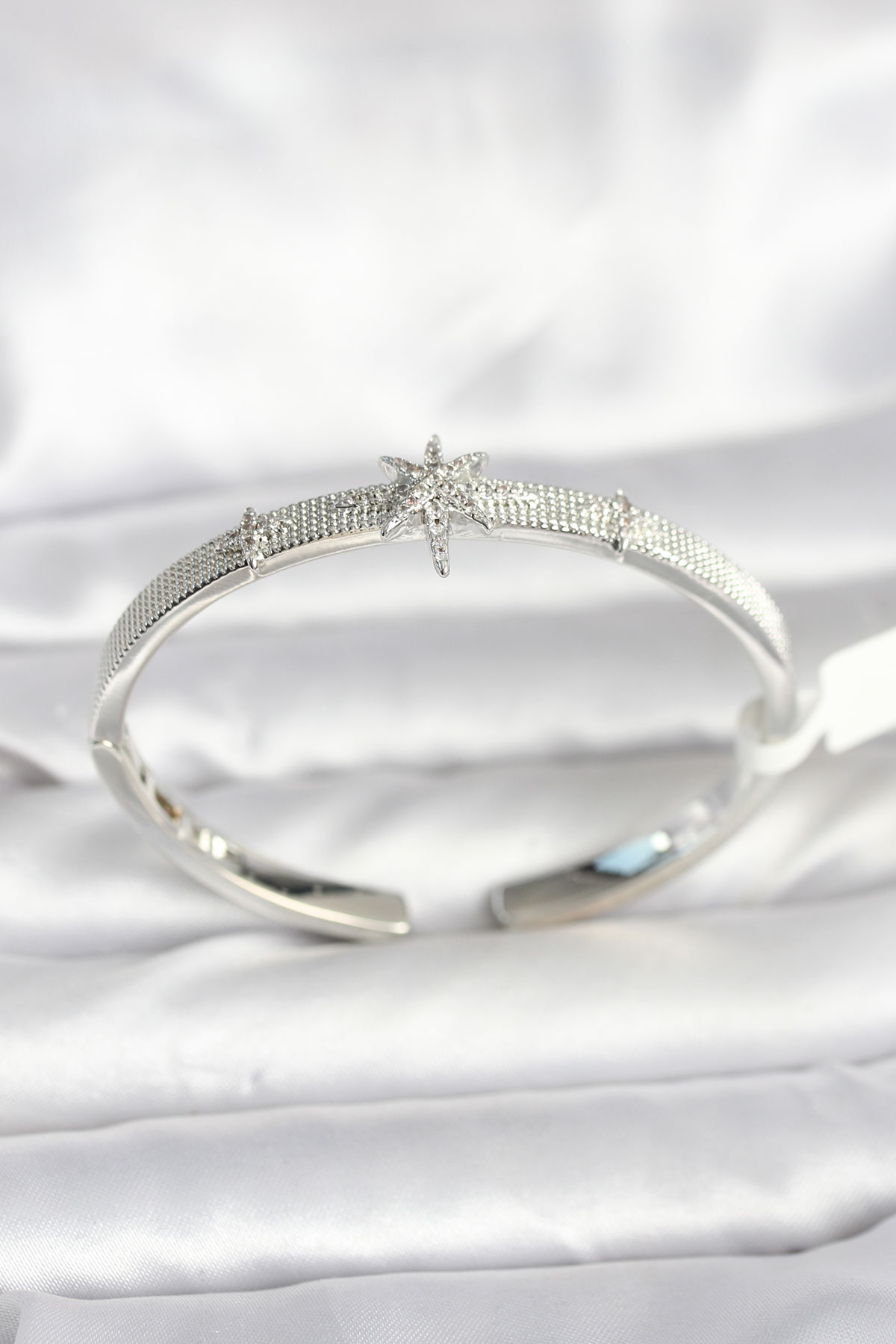 Pirinç Gümüş Renk Kutup Yıldızı Model Kadın Kelepçe Bileklik - TJ-BB8092