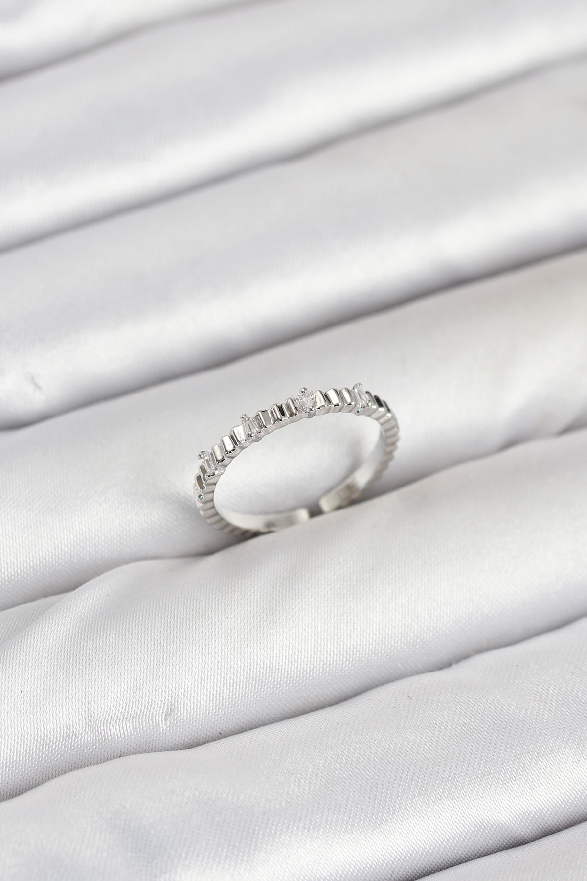 Pirinç Gümüş Renk Lazer Kesim Kadın Yüzük - TJ-BYK3893