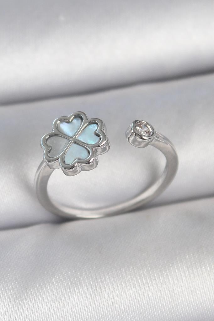 Pirinç Gümüş Renk Mavi Mineli Yonca Model Zirkon Taş Detay Ayarlanabilir Kadın Yüzük - BYK3750