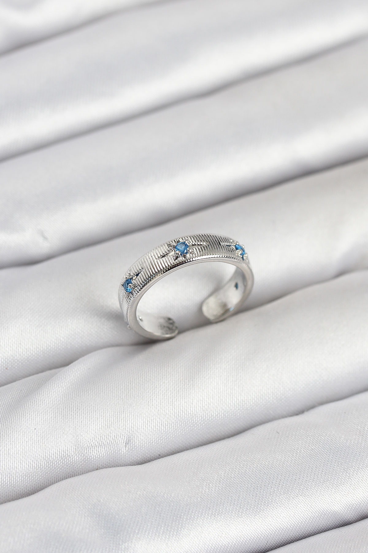 Pirinç Gümüş Renk Mavi Zirkon Taşlı Kutup Yıldızı Model Kadın Yüzük - TJ-BYK3897