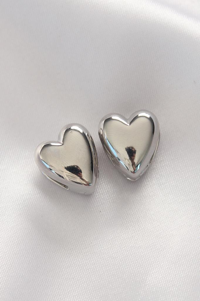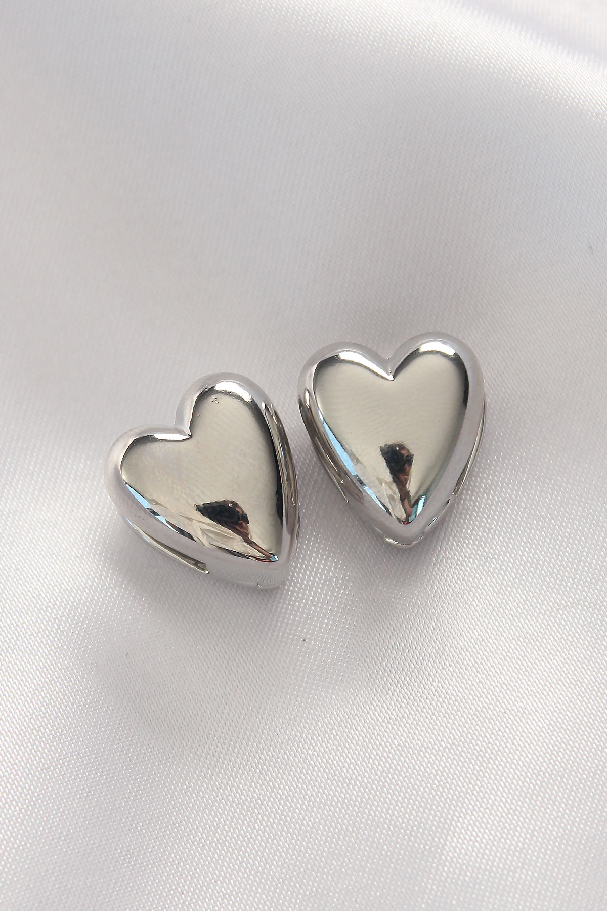 Pirinç Gümüş Renk Minimal Bombeli Kalp Küpe - TJ-BKP8969