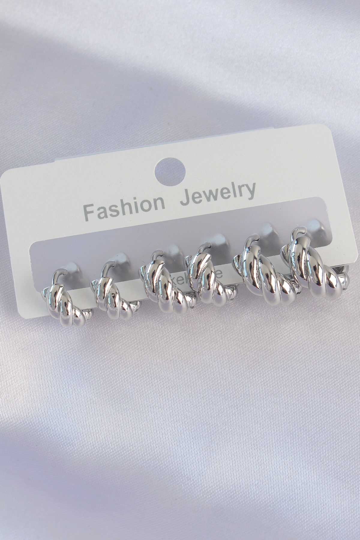 Pirinç Gümüş Renk Minimal Tırtıklı Küpe Seti - TJ-BKP8991