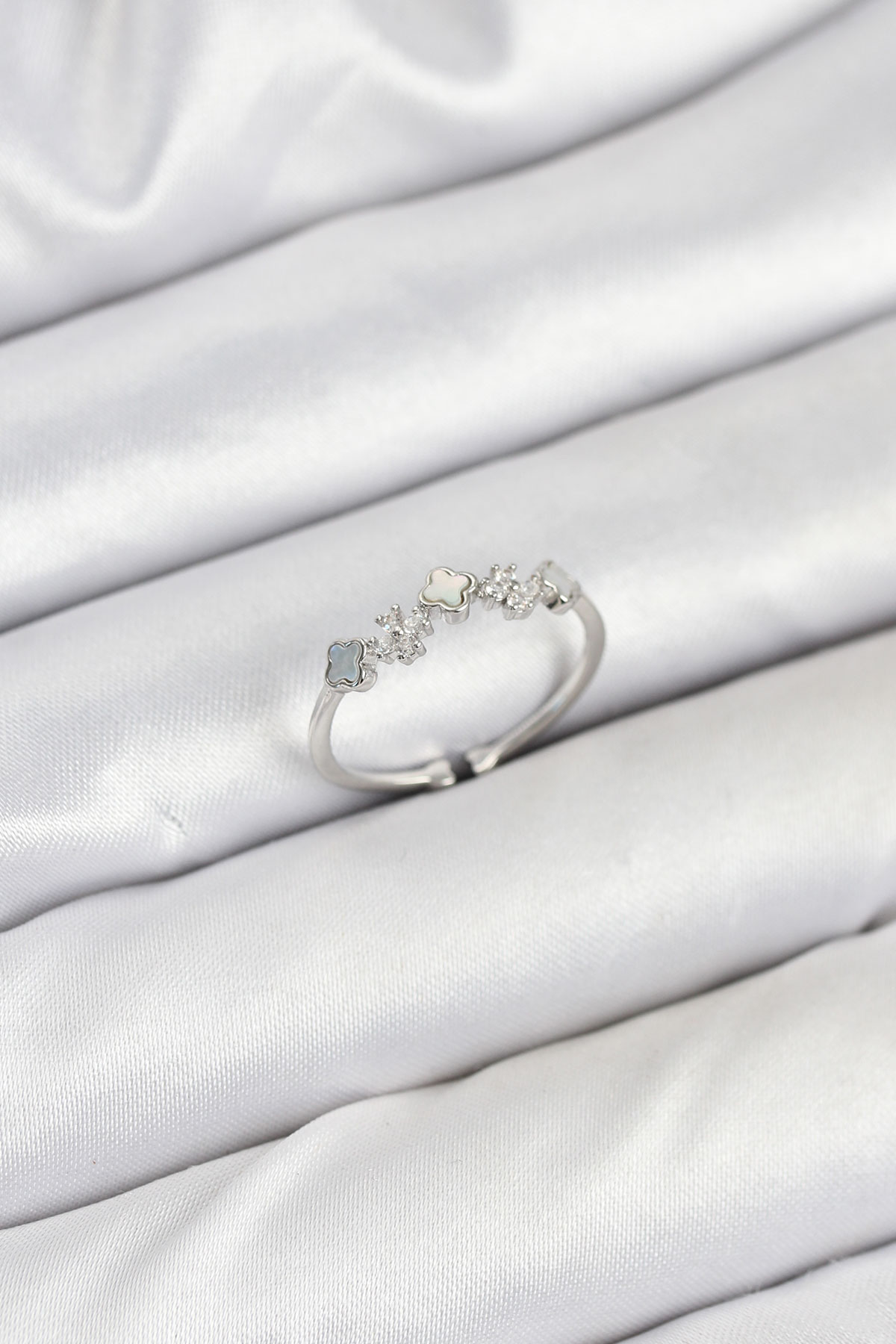 Pirinç Gümüş Renk Minimal Yonca Detaylı Kadın Yüzük - TJ-BYK3843