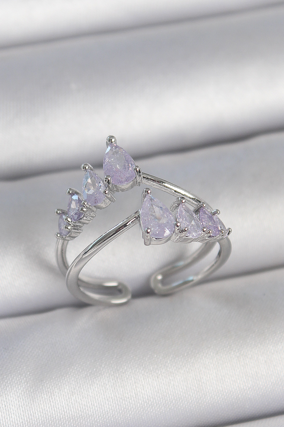 Pirinç Gümüş Renk Mor Damla Zirkon Taşlı Taç Model Kadın Yüzük - TJ-BYK3714