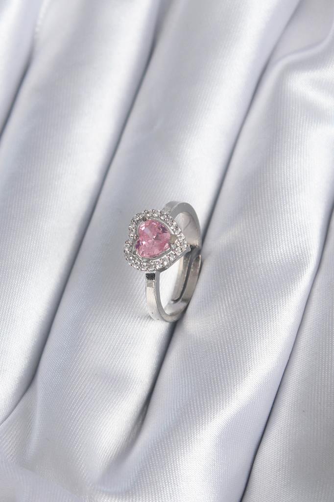 Pirinç Gümüş Renk Pembe Zirkon Taşlı Charm Model Kadın Yüzük - TJ-BYK2864