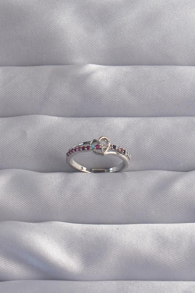 Pirinç Gümüş Renk Renkli Zirkon Taşlı Ayarlamalı Yüzük - TJ-BYK3270