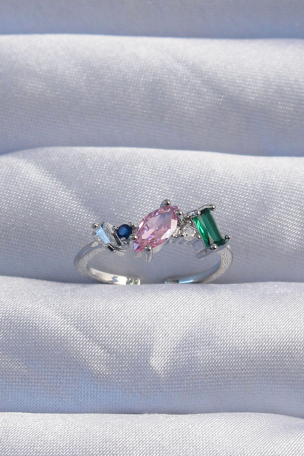 Pirinç Gümüş Renk Renkli Zirkon Taşlı Ayarlanabilir Yüzük - TJ-BYK3238