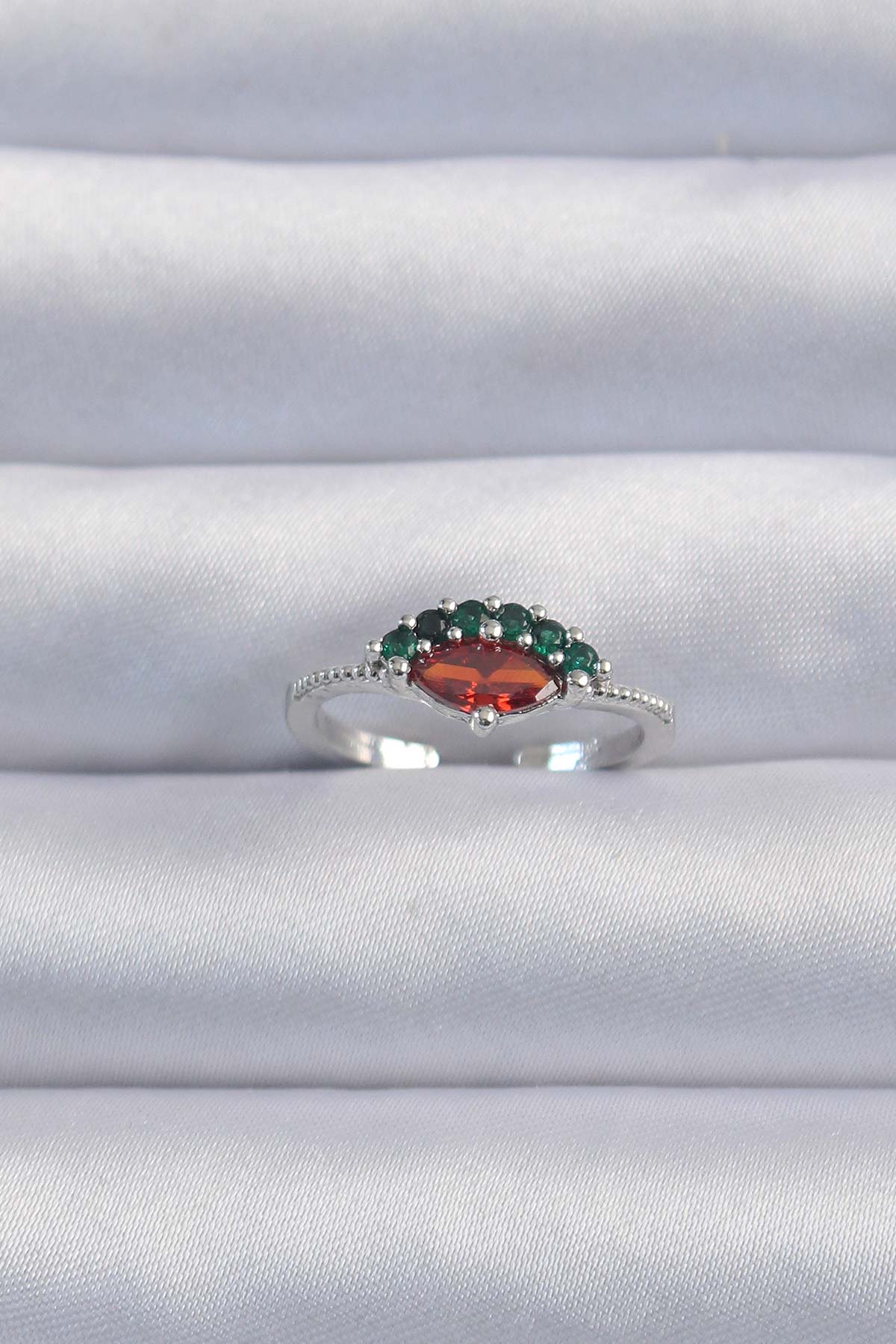 Pirinç Gümüş Renk Renkli Zirkon Taşlı Ayarlanabilir Yüzük - TJ-BYK3294