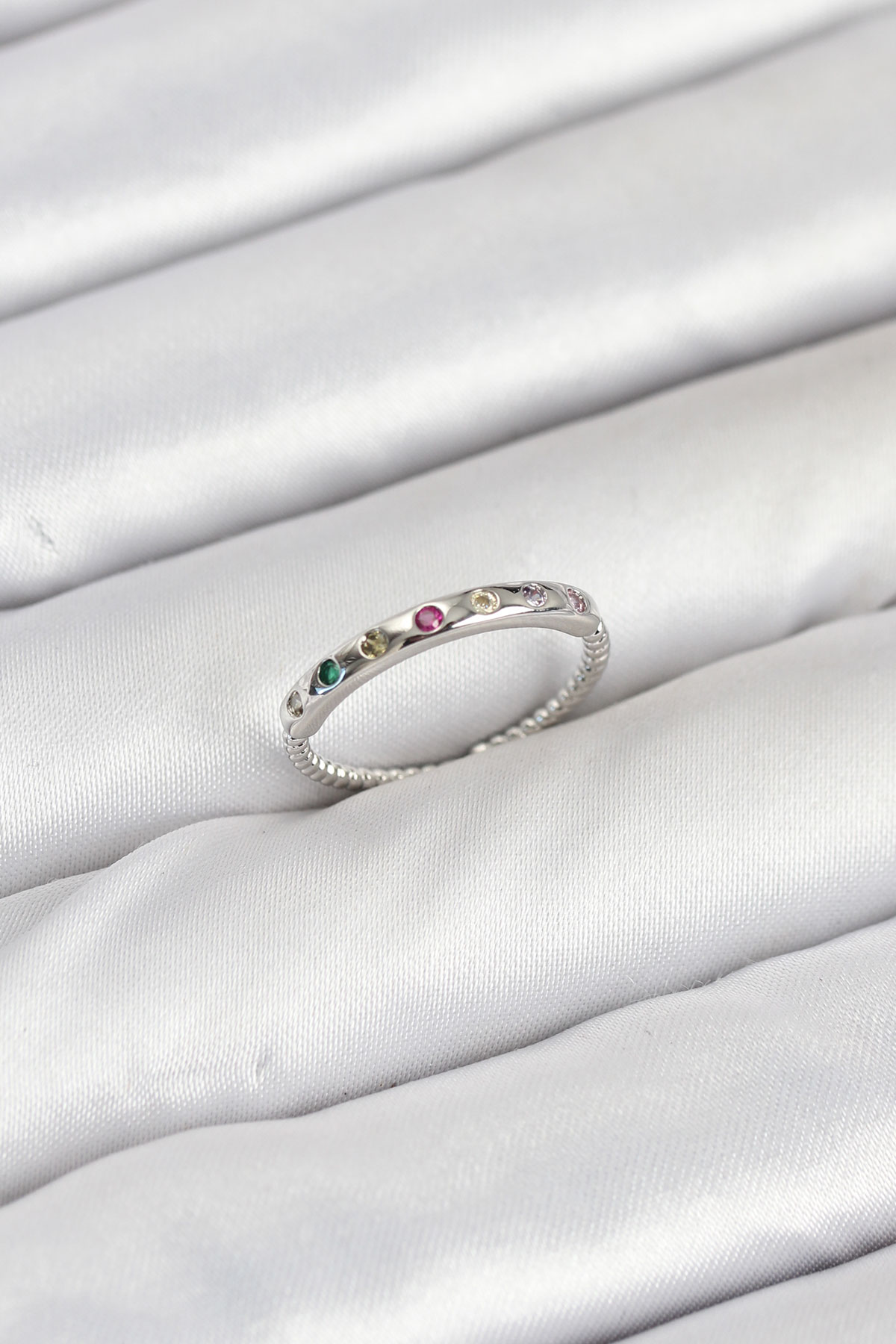 Pirinç Gümüş Renk Renkli Zirkon Taşlı Kadın Yüzük - TJ-BYK3885