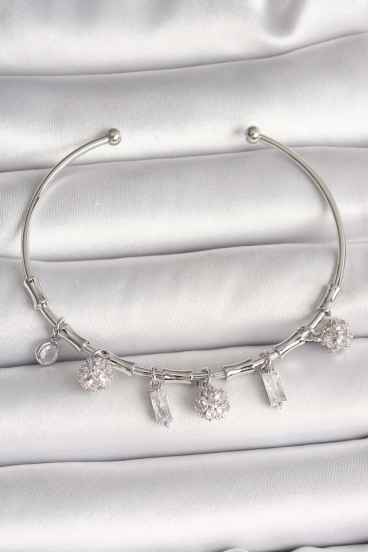 Pirinç Gümüş Renk Sallantı Zirkon Taşlı Çiçek Figür Charm Kadın Bileklik - TJ-BB6900