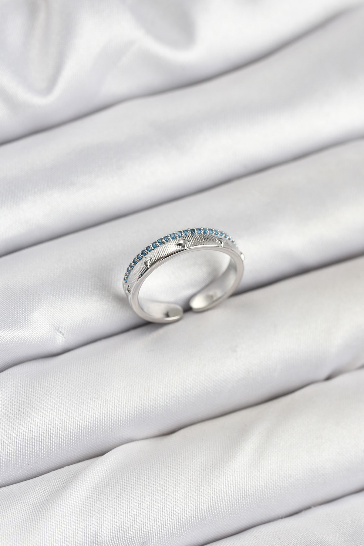 Pirinç Gümüş Renk Sıralı Zirkon Taşlı Kutup Yıldızı Model Kadın Yüzük - TJ-BYK3837