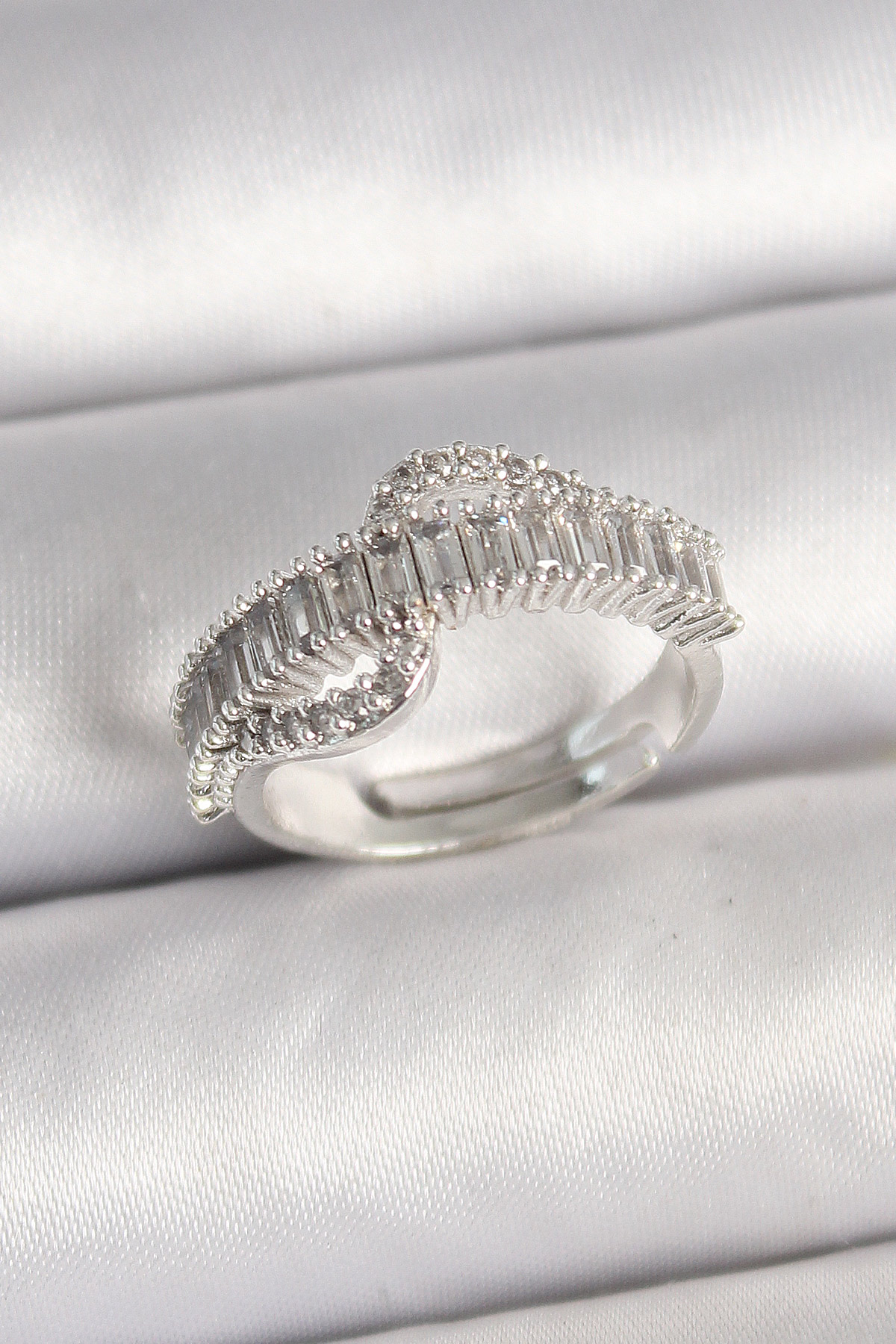 Pirinç Gümüş Renk Su Yolu Zirkon Taşlı Ayarlanabilir Model Kadın Yüzük - TJ-BYK3690