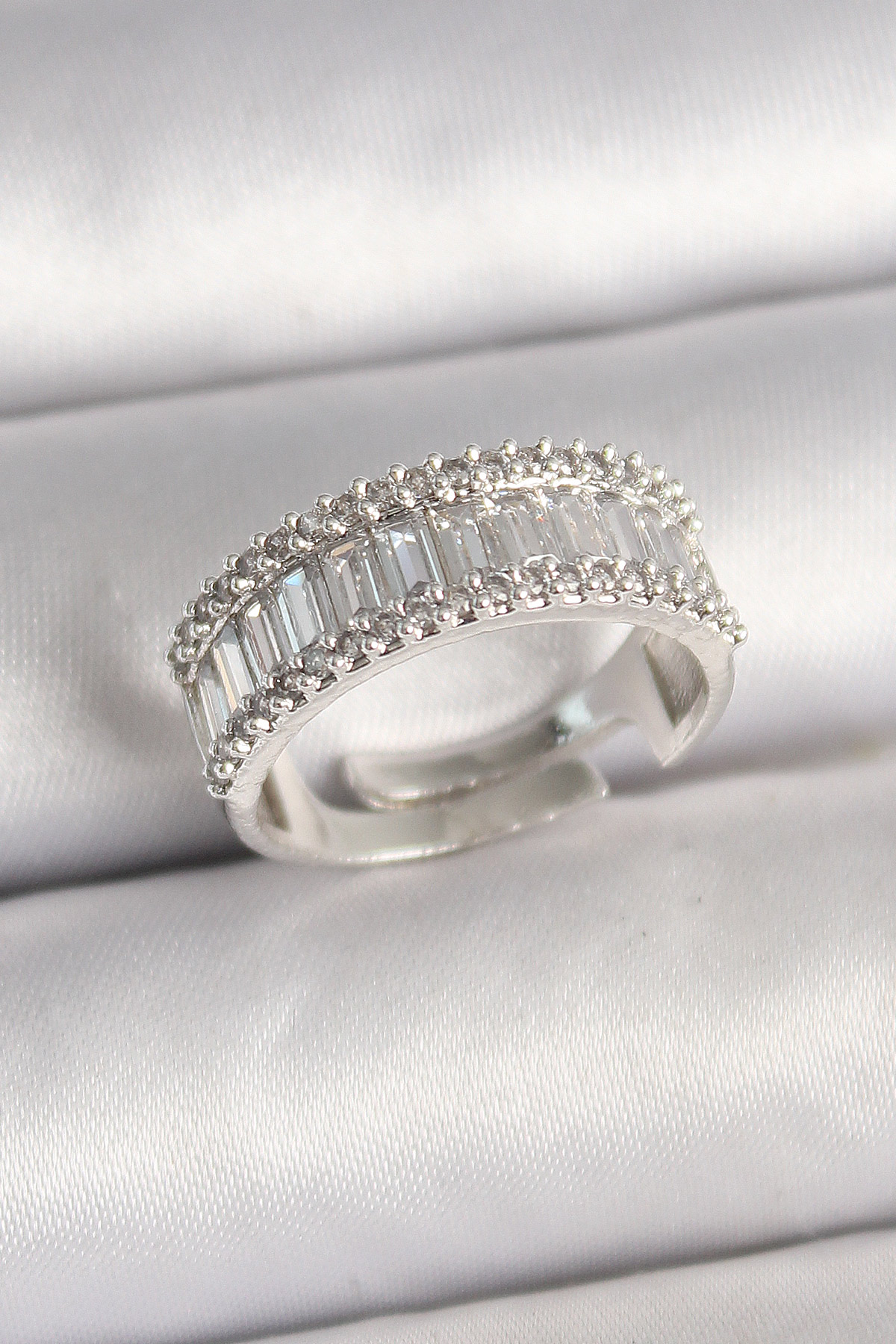 Pirinç Gümüş Renk Su Yolu Zirkon Taşlı Ayarlanabilir Model Kadın Yüzük - TJ-BYK3696