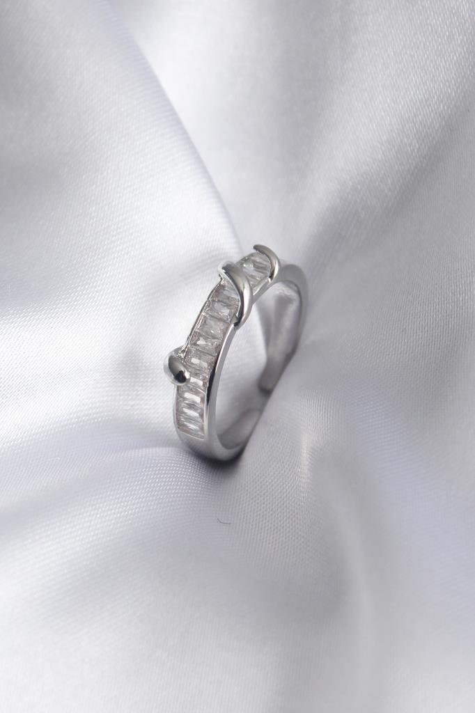 Pirinç Gümüş Renk Su Yolu Zirkon Taşlı Kadın Yüzük - TJ-BYK2914