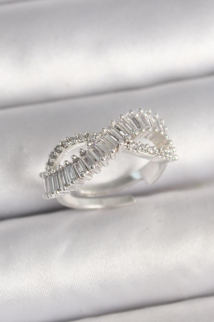 Pirinç Gümüş Renk Su Yolu Zirkon Taşlı Sonsuzluk Model Ayarlanabilir Kadın Yüzük - BYK3694