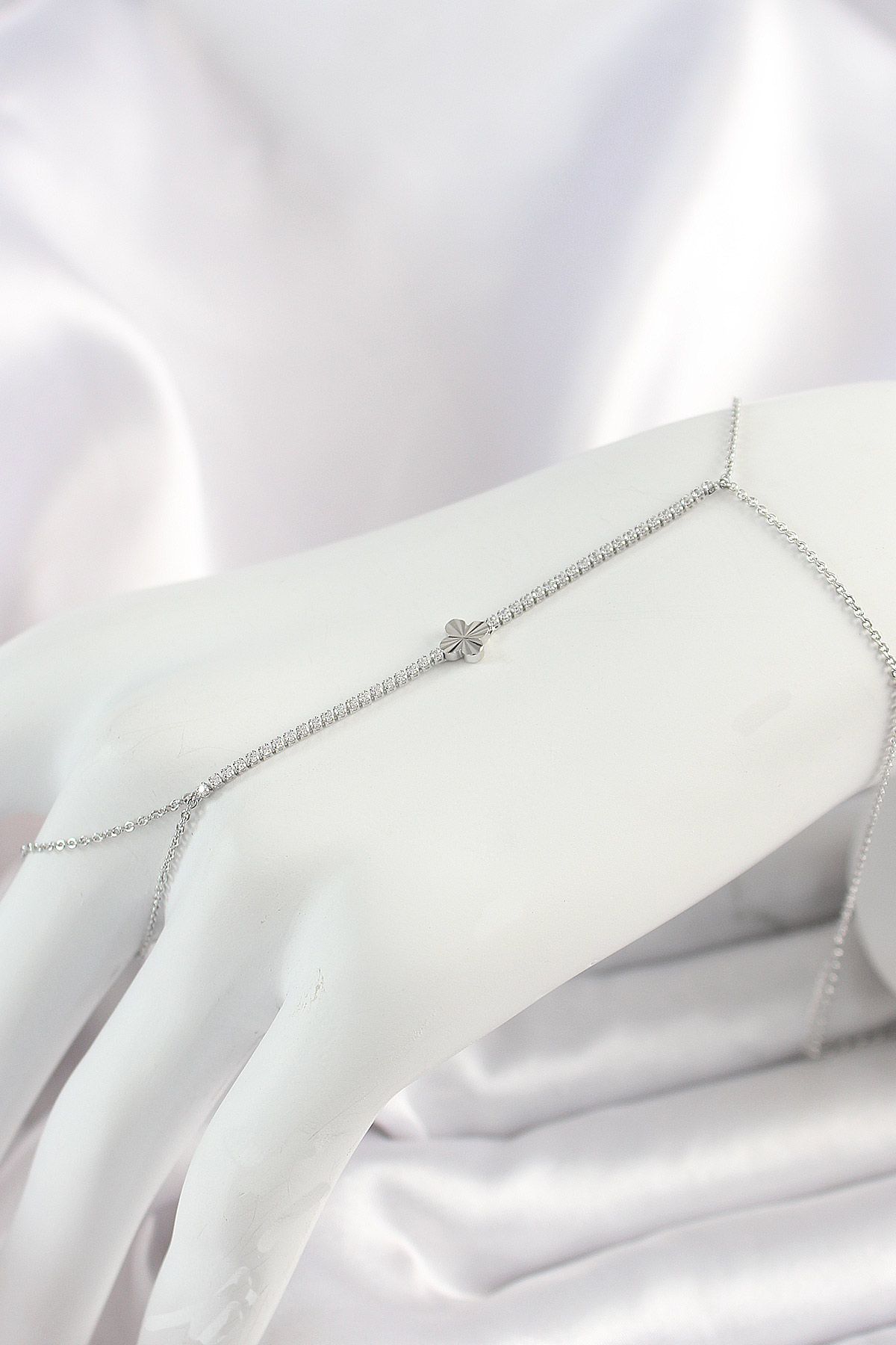 Pirinç Gümüş Renk Su Yolu Zirkon Taşlı Yonca Model Kadın Şahmeran - TJ-SN624