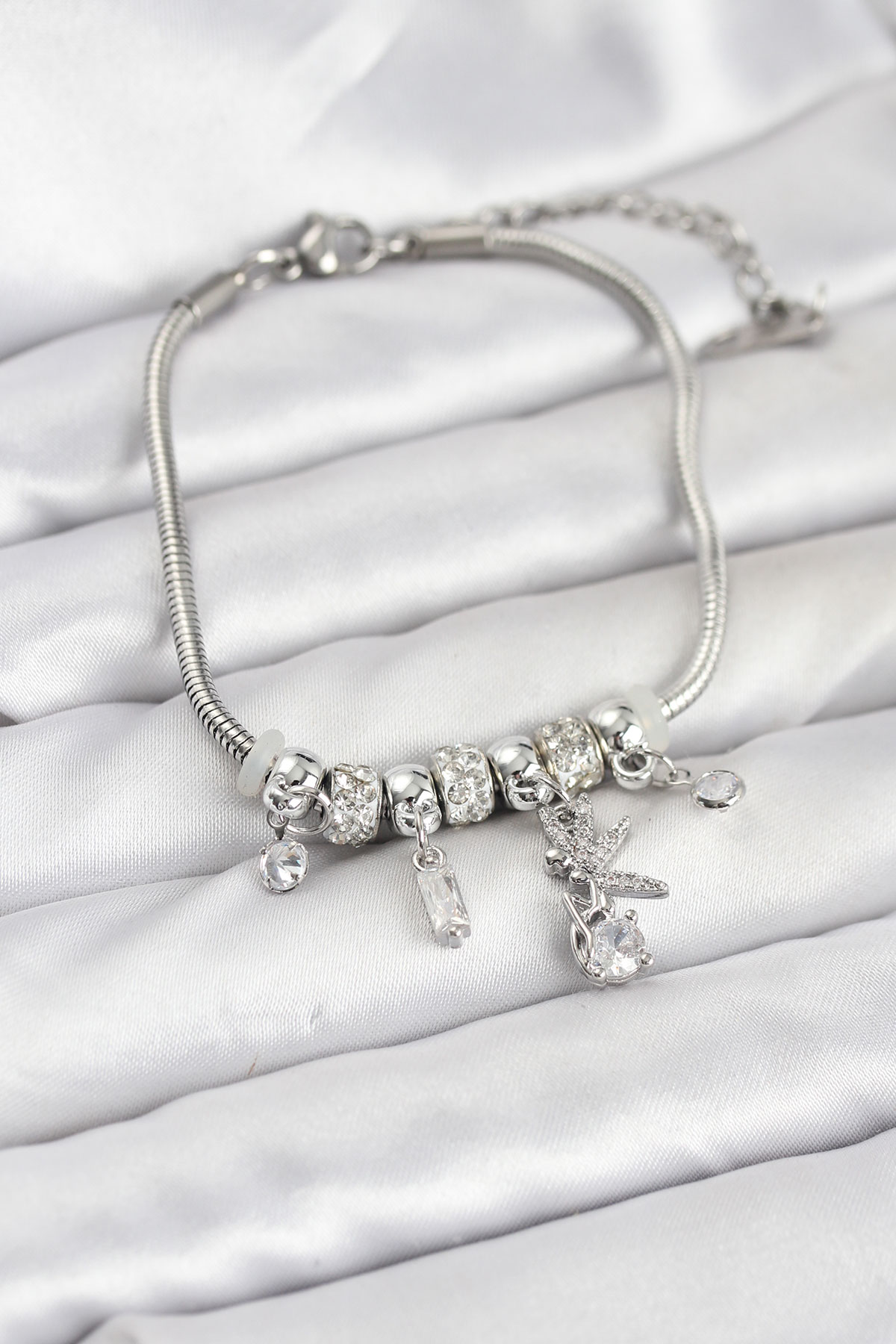 Pirinç Gümüş Renk Tinkerbell Charmlı Kadın Bileklik - TJ-BB8188