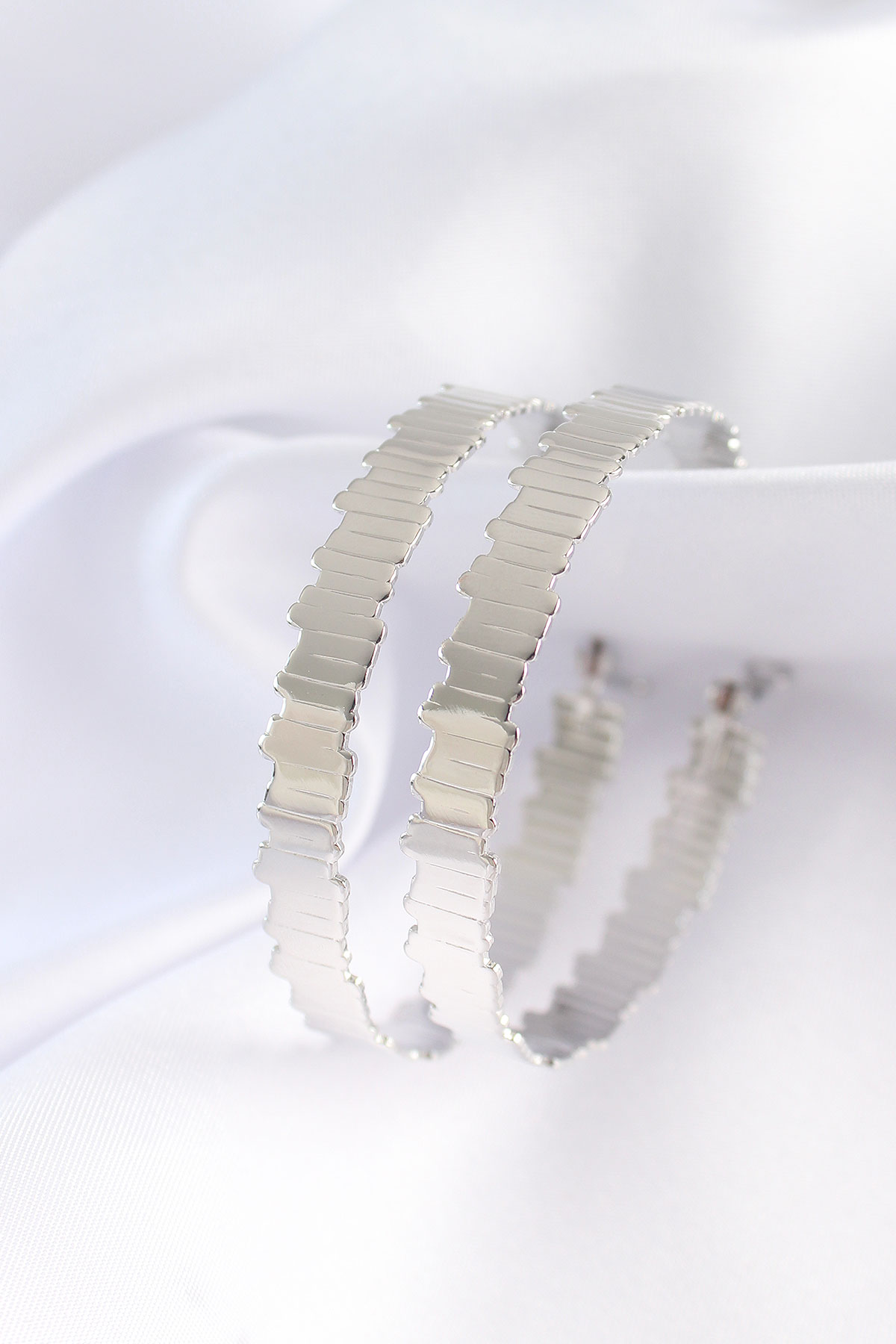 Pirinç Gümüş Renk Tırtıklı Halka Küpe - TJ-BKP8925