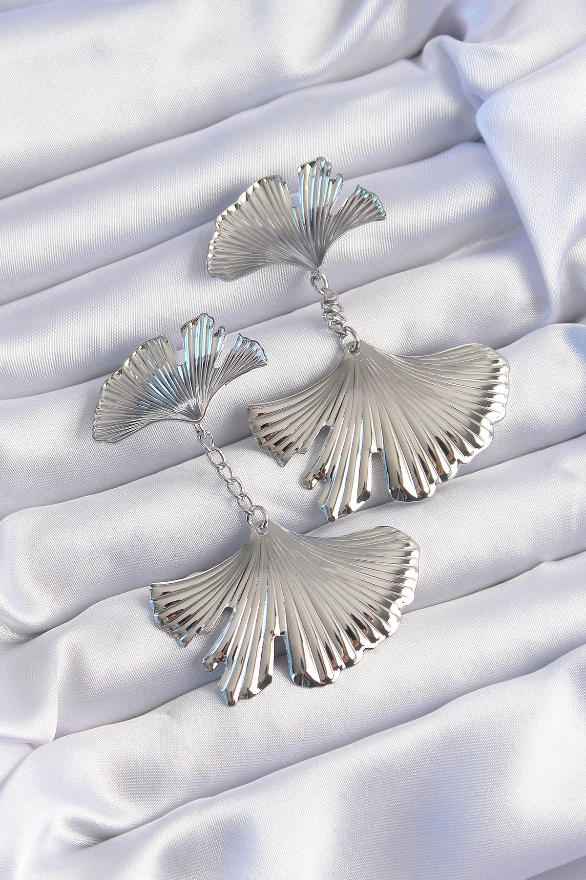 Pirinç Gümüş Renk Tırtıklı Yaprak Model Sallantılı Küpe - TJ-BKP9249