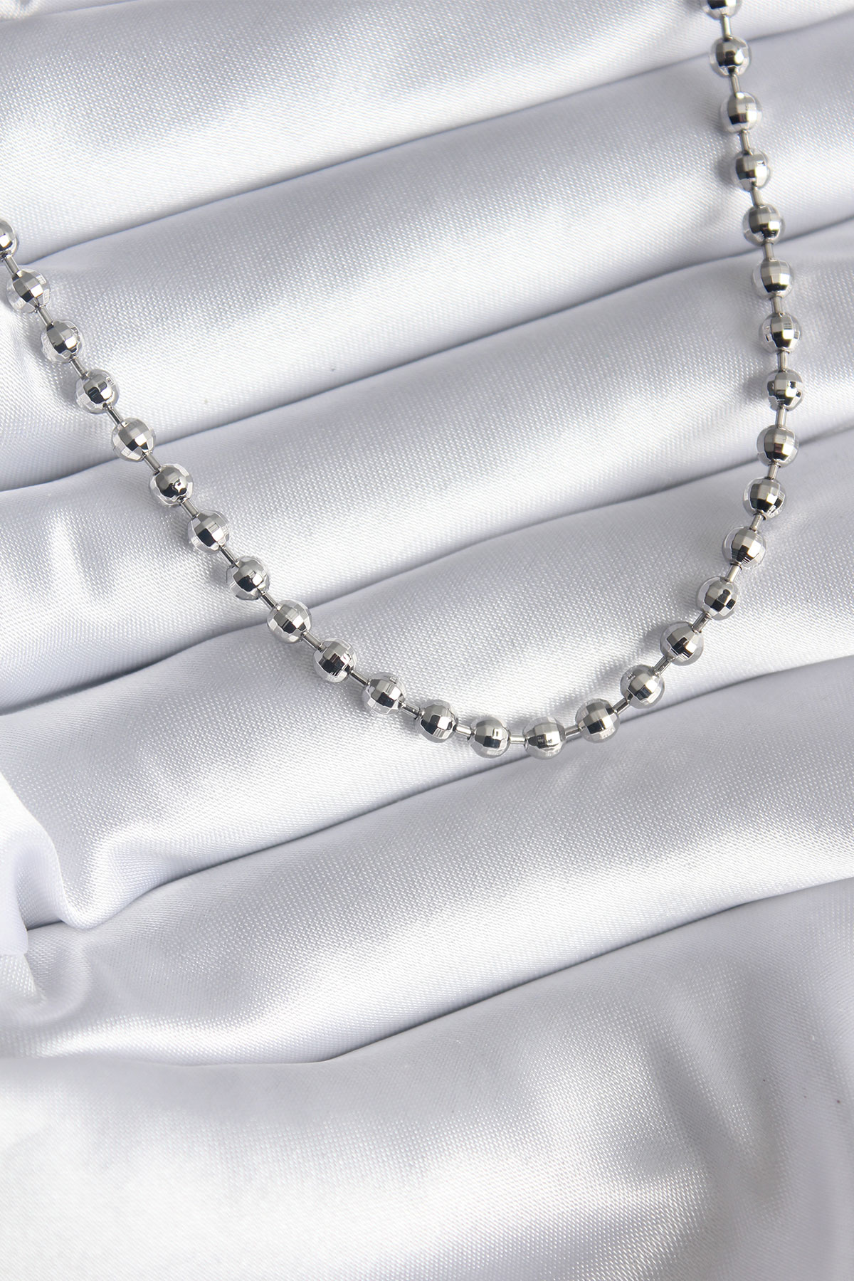 Pirinç Gümüş Renk Topçuk Detay Kadın Kolye - TJ-BKO8238