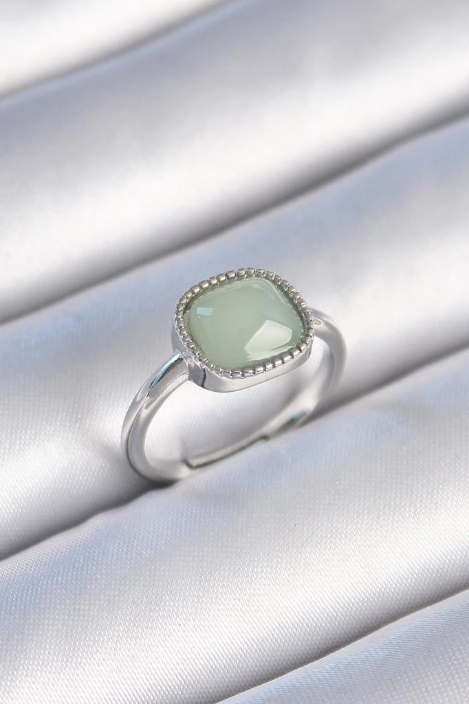 Pirinç Gümüş Renk Yeşil Kare Mineli Kadın Yüzük - TJ-BYK3473