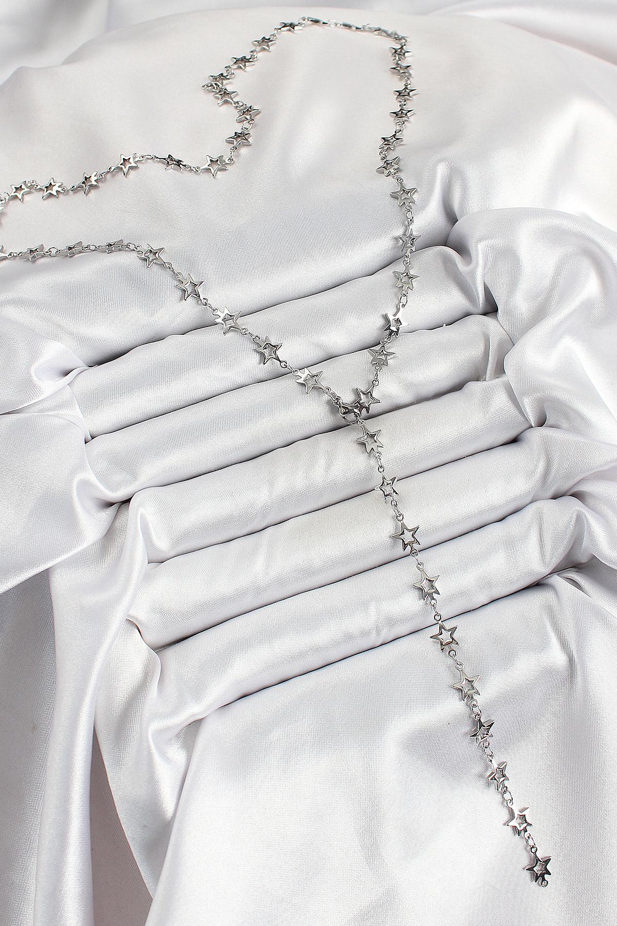 Pirinç Gümüş Renk Yıldızlı Kadın Y Kolye - TJ-BKO10300