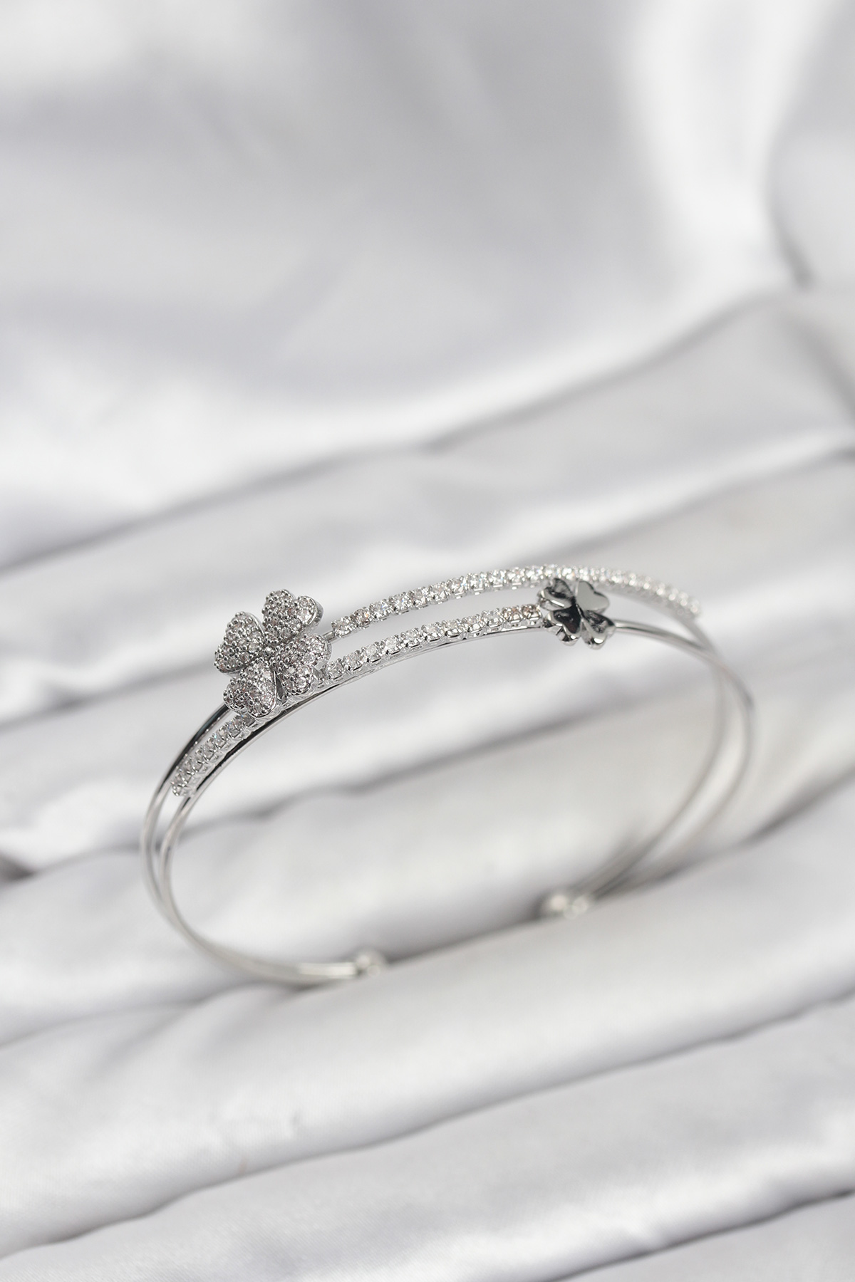 Pirinç Gümüş Renk Yonca Model Kadın Bileklik - TJ-BB8266