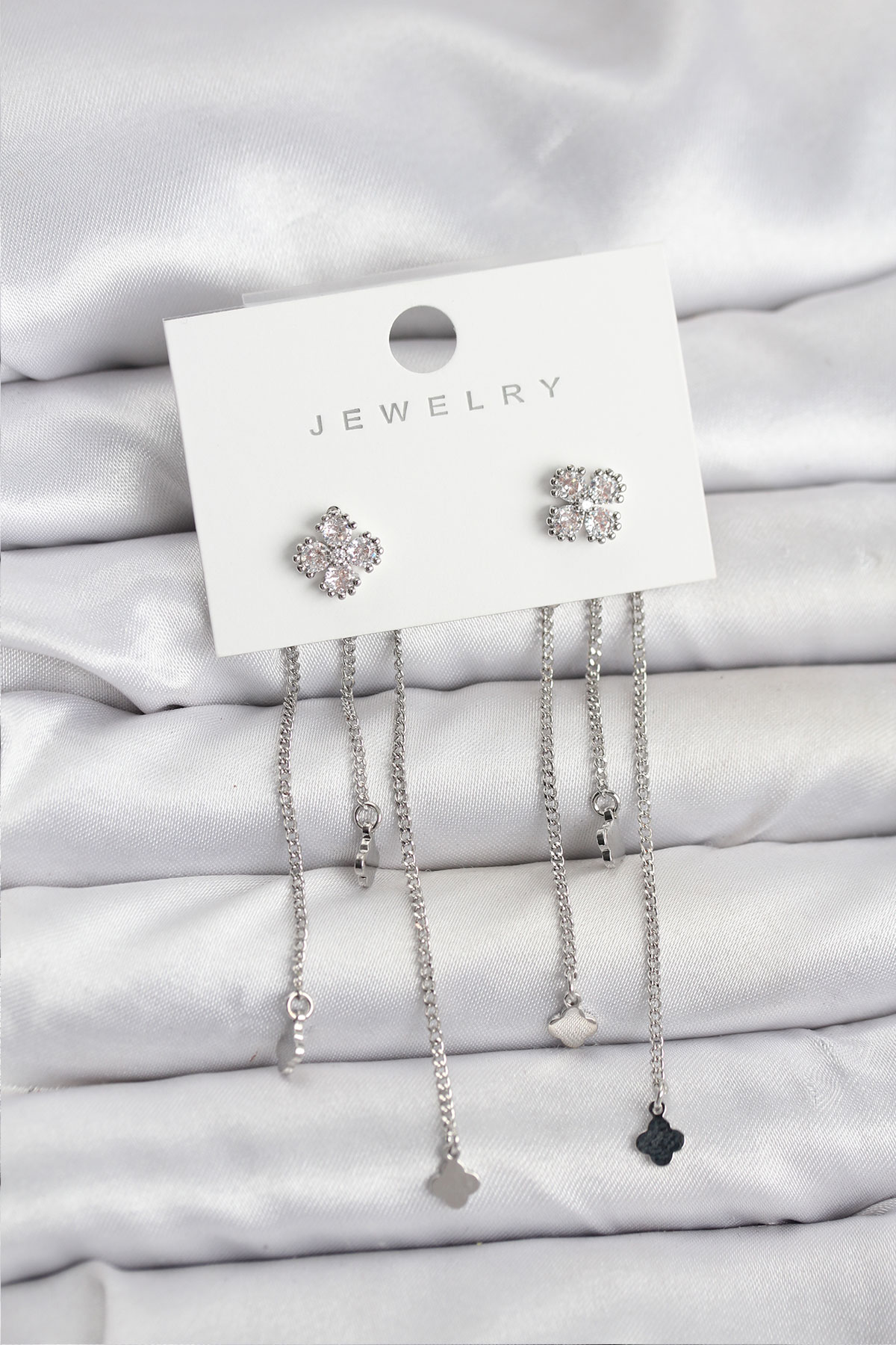 Pirinç Gümüş Renk Yonca Model Sallantılı Kadın Küpe - TJ-BKP11454