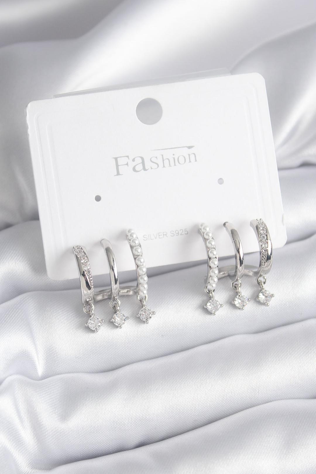 Pirinç Gümüş Renk Zirkon Taş Detay İncili Kadın Küpe - TJ-BKP9748