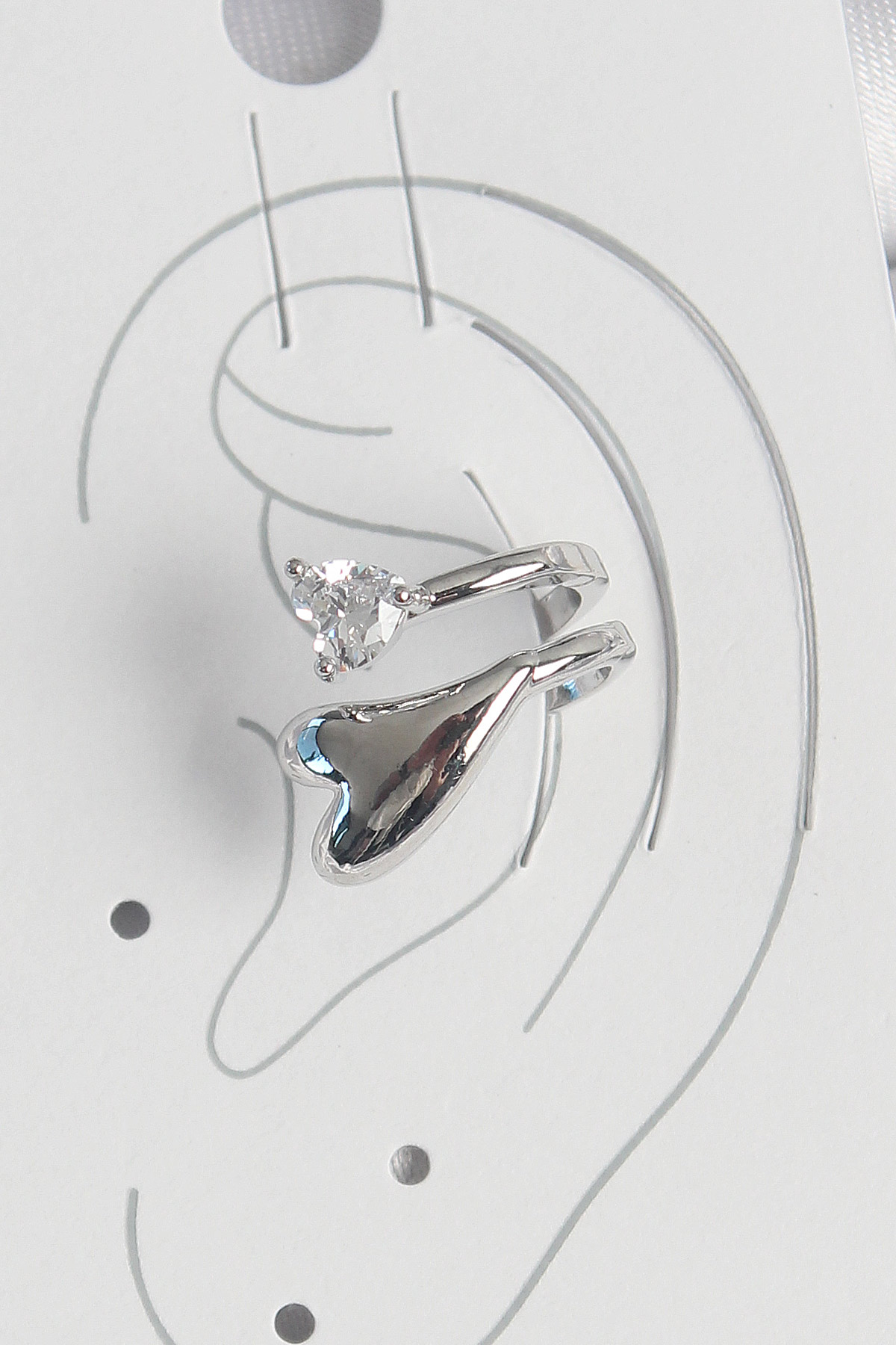 Pirinç Gümüş Renk Zirkon Taş Detaylı Kalp Model Kadın Kıkırdak Küpe - TJ-BKP10570